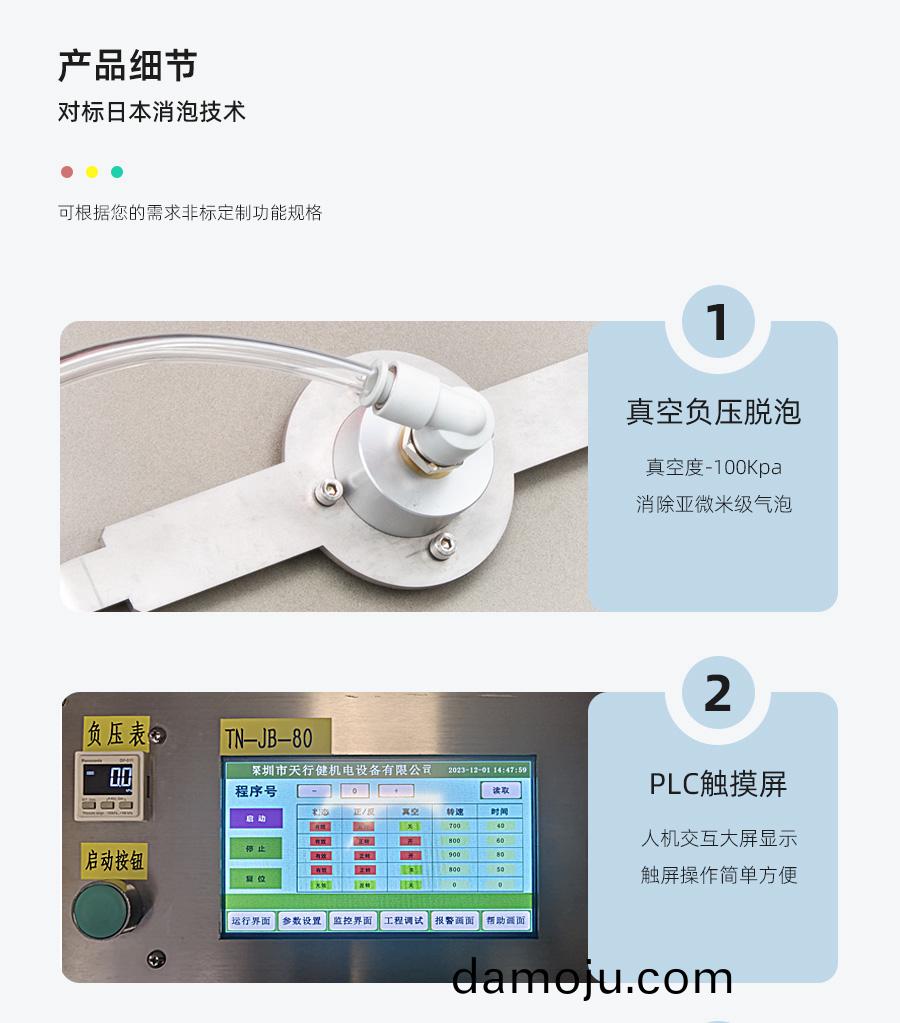 产(chan)品(pin)简介(jie): ★脱(tuo)泡时(shi)间(jian)短:3分(fen)钟搅拌(ban)脱(tuo)泡(pao),搅拌(ban)均匀(yun),消除(chu)亚微(wei)米(mi)级(ji)气泡(pao)