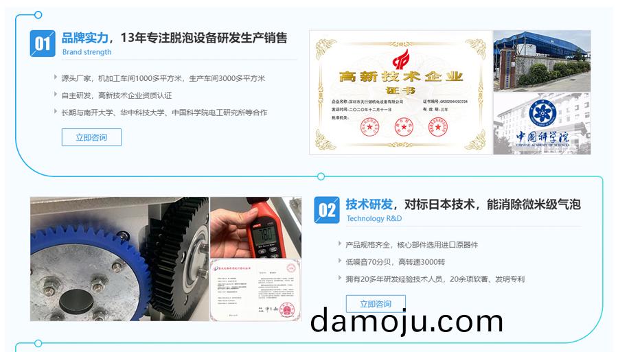 公(gong)司(si)多年(nian)来(lai)致力于真(zhen)空脱(tuo)泡设备(bei)的研(yan)发(fa)、设计(ji)、生产与(yu)销(xiao)售,现(xian)主要(yao)产品(pin)系(xi)列分真空搅拌脱(tuo)泡(pao)机(ji)系(xi)列(lie)和在(zai)线(xian)连(lian)续脱(tuo)泡机系列(lie),产品(pin)性能稳定,规格齐(qi)全,轻松满(man)足(zu)不同(tong)行(xing)业领(ling)域材料从研发到(dao)量(liang)产的分(fen)散(san)和脱泡(pao)需求,解(jie)决了材(cai)料内(nei)部气(qi)泡(pao)消除的(de)关键(jian)性(xing)难题。