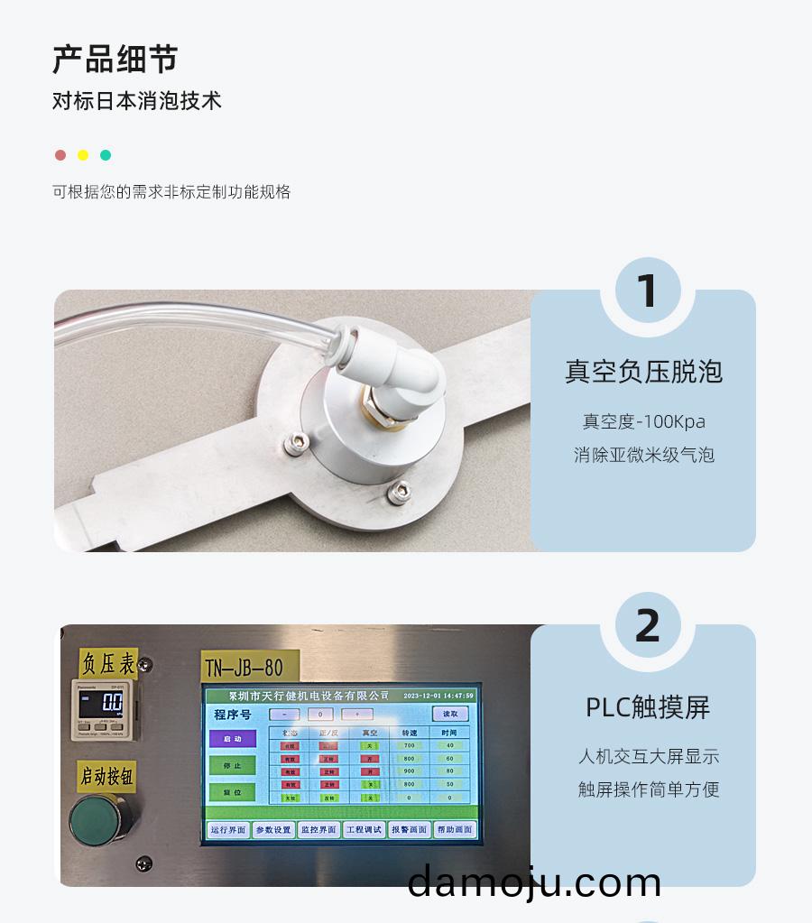 产(chan)品(pin)简介(jie): ★脱泡时(shi)间短:3分钟(zhong)搅拌(ban)脱(tuo)泡,搅(jiao)拌均匀(yun),消除亚微米级(ji)气泡